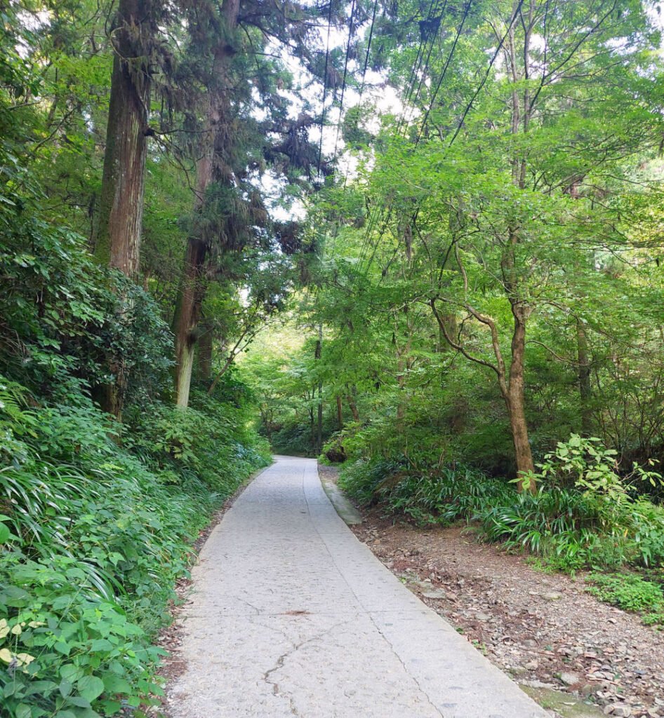 The temple was established in 744 (Nara Period), and its presence near the summit turns a simple hike into something layered: part pilgrimage route, part forest ramble.